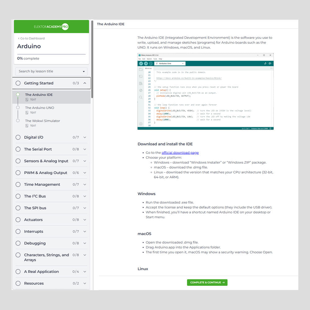 - Zugang zum vollständigen Kurs auf der Elektor Academy Pro-Lernplattform