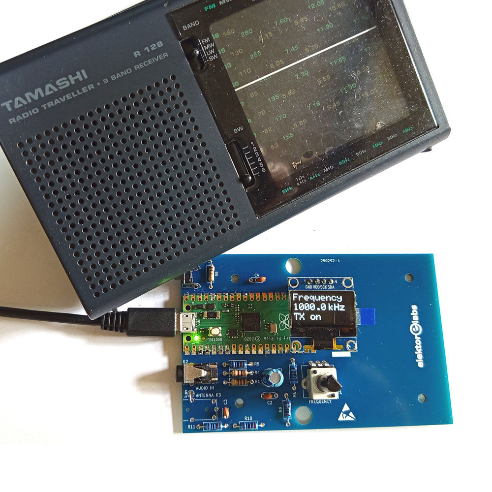 Das Elektor AM-Sender-Kit ermöglicht das Streamen von Audio auf Vintage-AM-Radioempfänger. Basierend auf einem Raspberry Pi Pico Mikrocontroller-Modul kann der AM-Sender auf 32 Frequenzen im AM-Band senden, von 500 kHz bis 1,6 MHz in 32 Schritten von ca. 35 kHz.