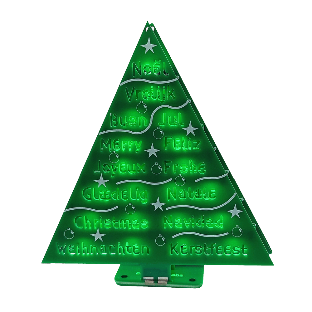 Bring some engineering magic to your festive season with the Wordy Christmas Tree, a unique DIY electronics kit designed by Elektor. This beautifully engineered 3D Christmas tree combines eleven PCBs, a Raspberry Pi Pico, and 27 addressable RGB LEDs to illuminate Christmas greetings in seven languages: Danish, Dutch, English, French, German, Italian, and Spanish.