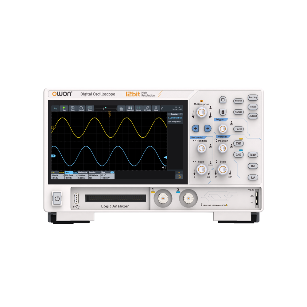 Die OWON ADS900A-Serie ist ein kompaktes 12-Bit-Digitaloszilloskop mit bis zu 2 GSa/s, 100 MPTS Speicher und 125/250 MHz Bandbreite. Mit seinem 7"-Multitouch-Display, FFT, Protokolldekodierung und integriertem Logikanalysator ermöglicht es eine präzise Signalanalyse für Labor-, Werkstatt- und Feldanwendungen.