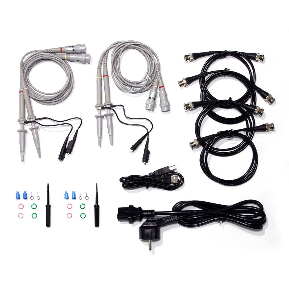 • Zubehör: USB-Kabel, Software-CD für Windows, Netzkabel, 4 Tastköpfe, BNC Kabel, Tragetasche und Bedienungsanleitung